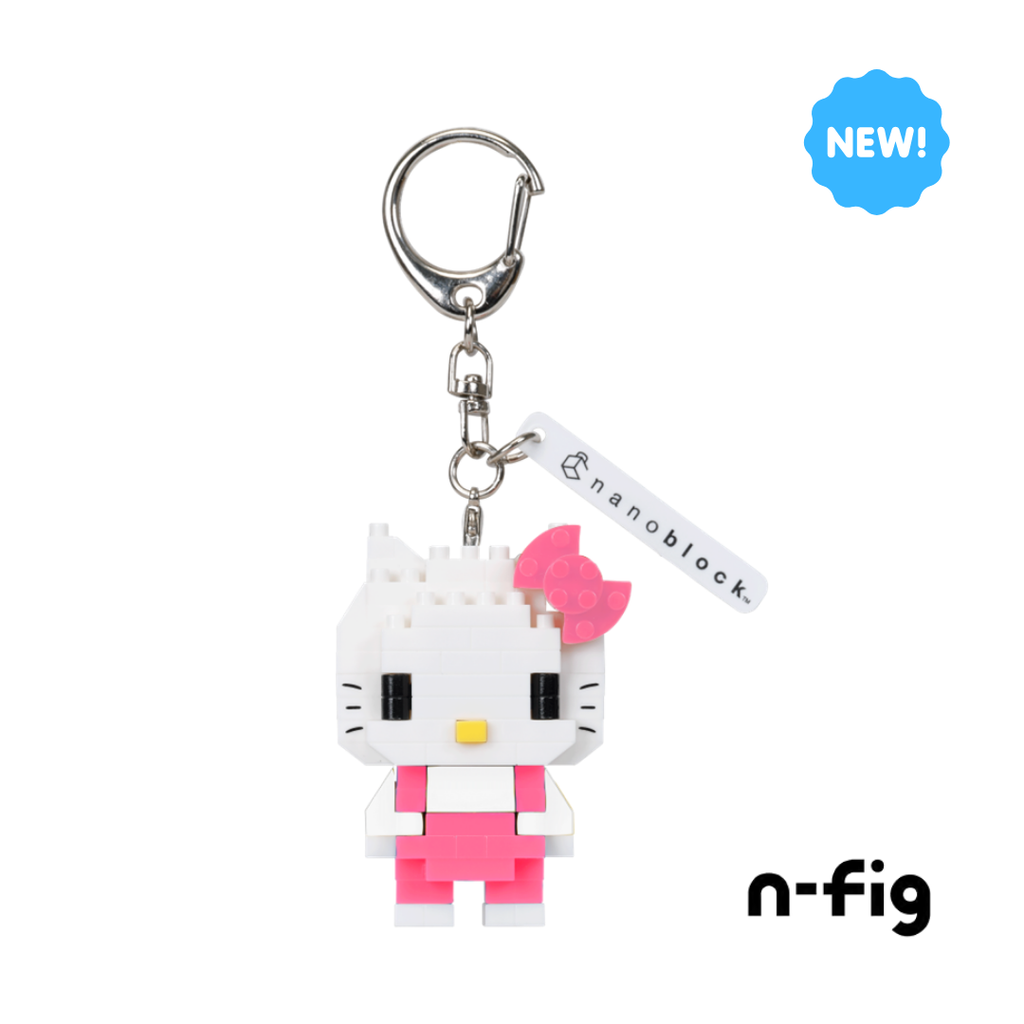Fully moulded nanoblock-inspired figurines on removable key chains or bag tags.